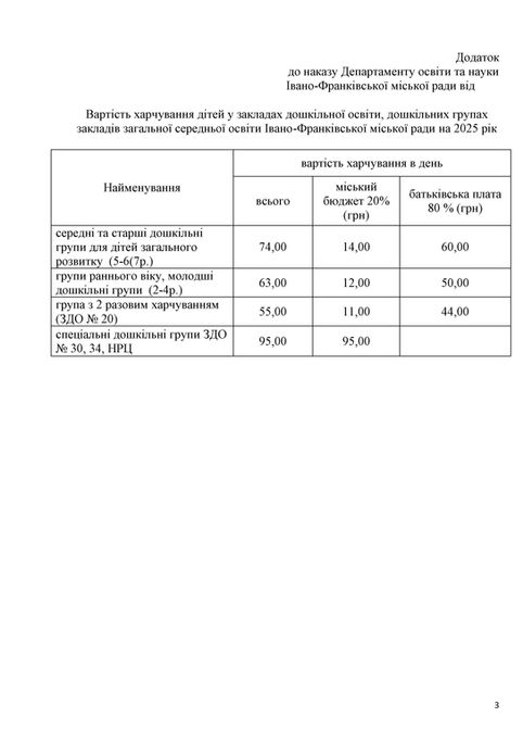 Про встановлення розміру батьківської плати за харчування дітей у 2025 р.